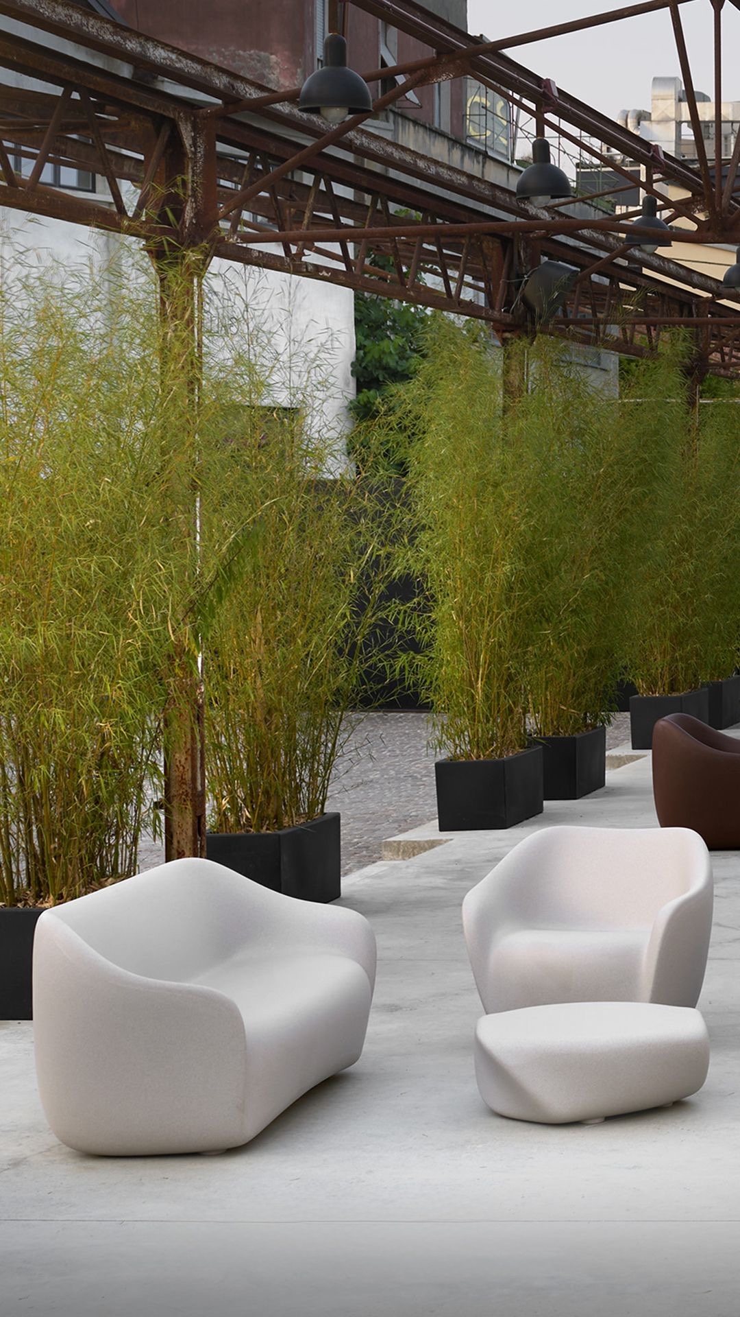 Диван и кресло, а также два столика (низкий и широкий, высокий и узкий) изготовлены из переработанных материалов и разработаны для комфорта и стиля в любой обстановке.