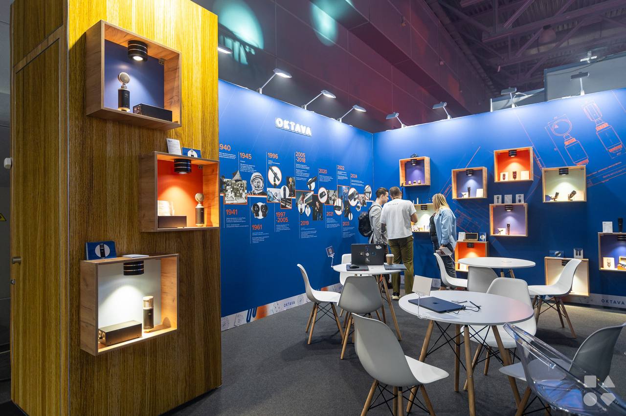 В этом году мы, традиционно, построили стенды для коллег по цеху - близким партнерам и поставщикам PKC.BY (Беларусь), а также для российских производителей акустики OKTAVA (Тула).